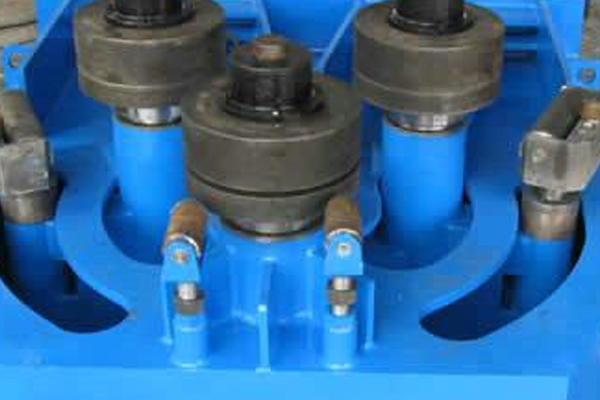 方管型材彎曲機(jī)的三個(gè)工作輥均為主驅(qū)動(dòng)輥,通過液壓馬達(dá)、齒輪來實(shí)現(xiàn),兩下輥升降為液壓傳動(dòng),兩下輥可圍繞固定回轉(zhuǎn)中心做弧線升降運(yùn)動(dòng),工作輥的兩側(cè)設(shè)有托輥和矯正導(dǎo)向輥裝置,有利于保證非對稱截面(比如角鋼)型材卷制質(zhì)量。 該機(jī)型為三輥全驅(qū)動(dòng),可進(jìn)行型材端部的預(yù)彎,通過調(diào)節(jié)導(dǎo)輥,可對非對稱型卷制過程中產(chǎn)生的扭曲進(jìn)行校正,所有動(dòng)作均由電器控制柜上的按鈕來完成,位移數(shù)字顯示,顯示精度0.1mm。根據(jù)型材截面的形狀可完成不同形狀的卷制。該型設(shè)備的優(yōu)點(diǎn)是卷制型材的精度好、工作效率高。